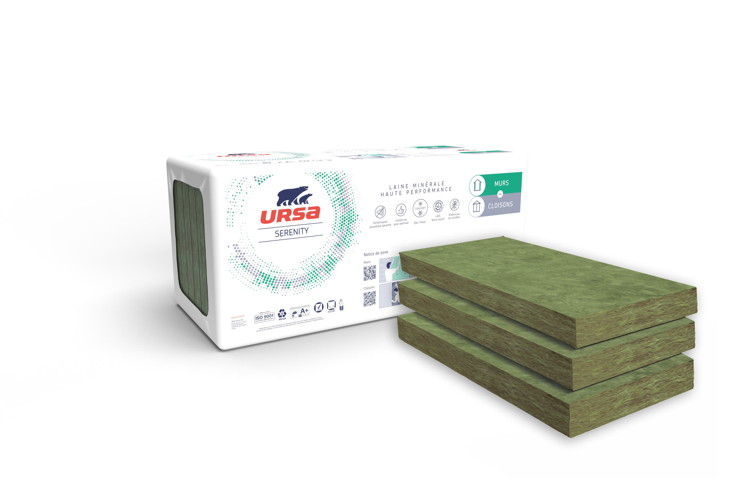 Panneaux Laine de Verre URSA SILENTIO nue, semi-rigide, isolation/cloisons